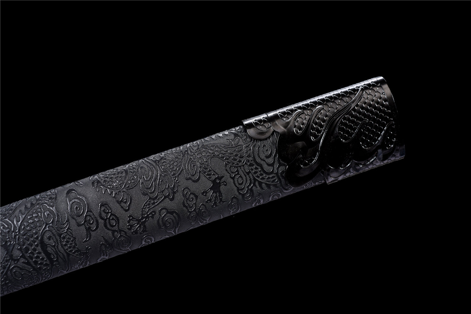 The sheath is made of solid wood with PU leather exterior.